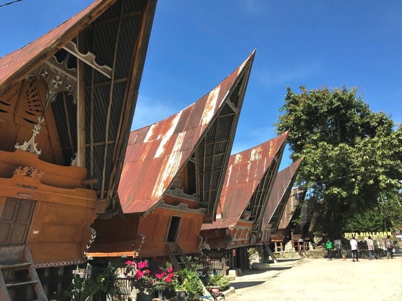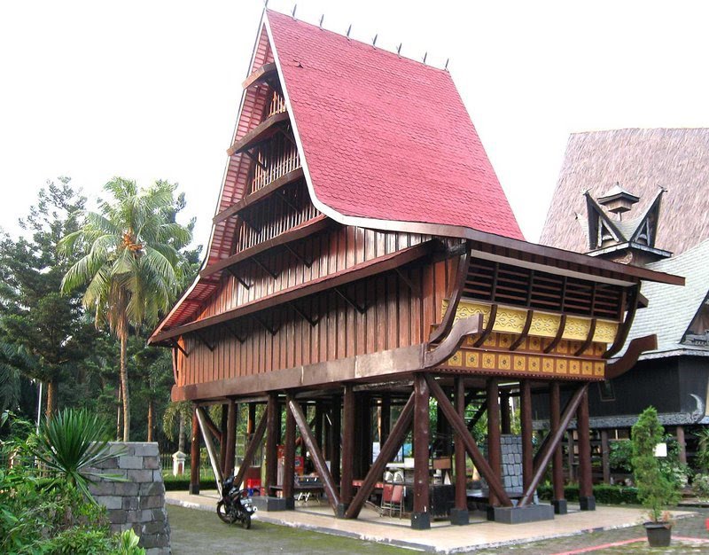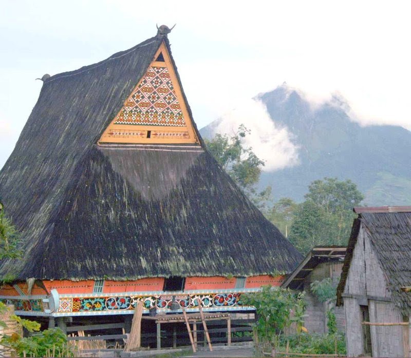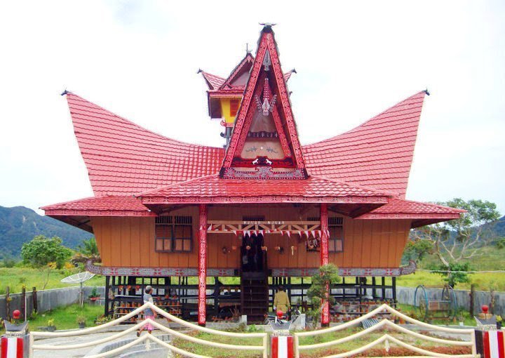 Keunikan rumah adat Sumatera Utara ini terletak pada bagian atapnya yang mirip seperti tanduk kerbau.